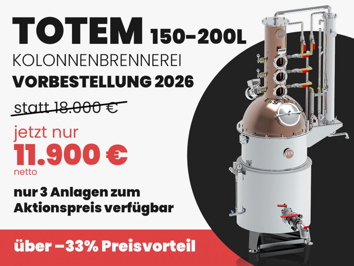 Wir sehen uns am 18.10.2025 bei Martin im Murtal wieder. Es werden 80 Liter Maische mit der kolonnenbrennerei TOTEM 95L in einem Brennvorgang zum Feinbrand destilliert!